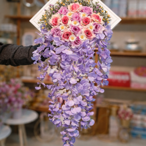 Framed Flower Arrangements with Cascading Flowers – Elegant Home Decor (Purple, Pink, Lavender, White)